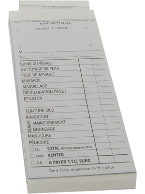 Lot de 10 carnets de caisse esthétique New & Beauty sans numérotation.