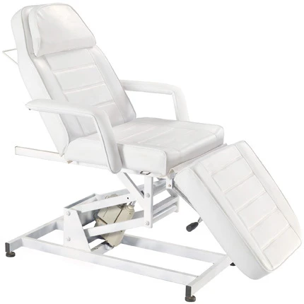 Fauteuil Blanc avec hauteur réglable électriquement offrant un confort idéal aux clients comme aux professionnels. Fauteuil parfait pour les prestations SPA et Esthétiques.