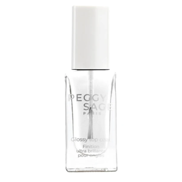 Vernis Glossy Top Coat Peggy Sage 11ml ultra brillant effet laqué vinyle pour mettre en valeur la beauté naturelle de l’ongle et rehausser l’éclat du vernis