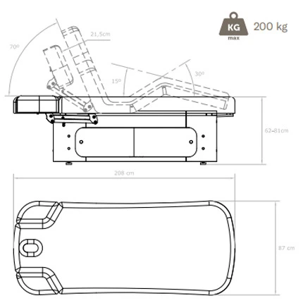 – Hauteur avec 2 moteurs (position à plat): 62-81 cm