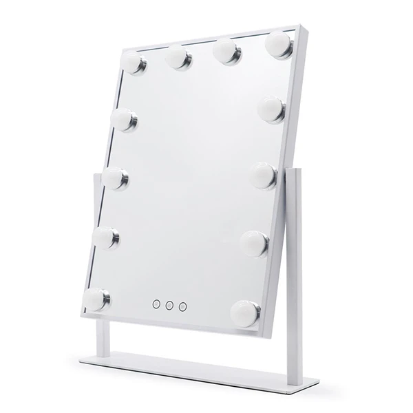 Un miroir de haute définition très élégant avec sa structure en Aluminium et une base en métal blanc.